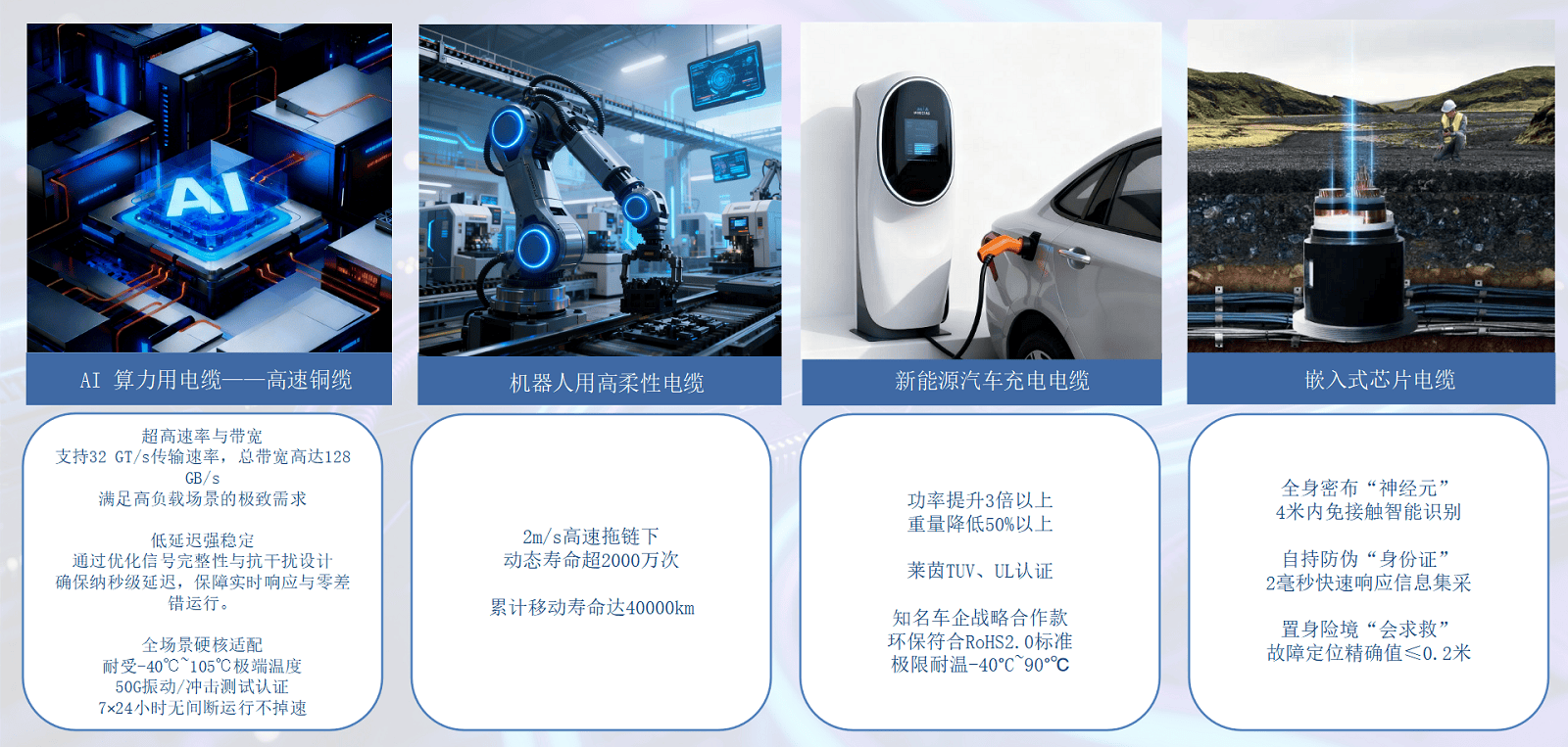 此外,遠(yuǎn)東股份進(jìn)行全方位布局,通過實施高端化、集成化、國際化戰(zhàn)略,優(yōu)化調(diào)整產(chǎn)業(yè)結(jié)構(gòu),不斷提高質(zhì)量和效益,以電能+算力+AI的創(chuàng)新布局,開辟行業(yè)新藍(lán)海。努力把公司建設(shè)成為管理先進(jìn)、技術(shù)密集、品牌卓著的國內(nèi)一流、國際知名的電纜行業(yè)標(biāo)桿,向著成為“全球線纜行業(yè)領(lǐng)跑者”這一宏偉愿景不斷前行。
